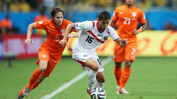 14-я мин: Владеет игровым и территориальным преимуществом сборная Нидерландов. Команда Коста-Рики старается играть на контратаках.