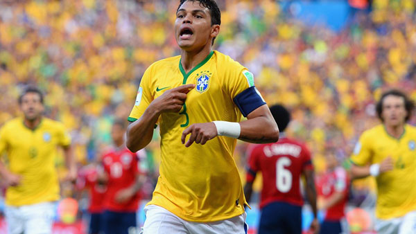 ГОЛ! Тьяго Силва после розыгрыша углового дождался мяча на дальней штанге и ногой отправил его в ворота - 1:0 в пользу сборной Бразилии на 7-й минуте игры.