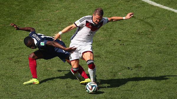 10-я мин: Мюллер в центре поля эффектно обыграл соперника, пытался разогнать контратаку, но тут же на нём сфолил Эвра. Активнее немцы!