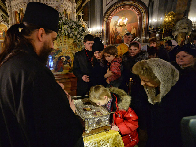 Понедельник - последний день, когда московские верующие могут поклониться христианской святыне - Дарам волхвов, которые к Рождеству Христову привезли в Россию с Афона. Организаторы обещают сделать все, чтобы очередь двигалась быстрее и максимальное число паломников смогло посетить храм Христа Спасителя. Доступ к святыне будет открыт до 22:00.