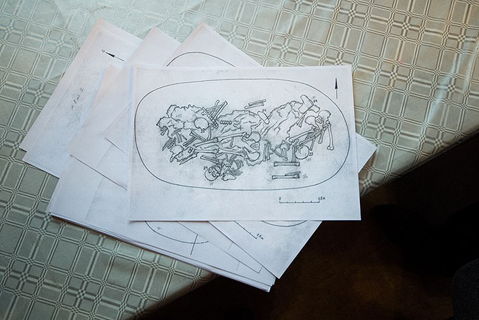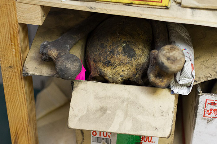 На территории Петропавловской крепости, недалеко от Зотова бастиона, в небольшом помещении уже несколько лет работают археологи. В темном узком коридоре свалены лопаты, на столах разложены газеты и инструменты, а по периметру комнат стоят стеллажи с рядами картонных коробок. На некоторых слоган производителя — «Все сложилось!», рядом с ним маркером подписан номер братской могилы, внутри темнеют почти век пролежавшие в земле кости, которые теперь хранятся в ожидании изучения. Под руководством археолога, научного сотрудника Института истории материальной культуры РАН Владимира Кильдюшевского, здесь ведутся раскопки захоронений жертв красного террора, расстрелянных в 1918–1919 годах. — Люди были навалены друг на друга в семь ярусов. Их просто скидывали как попало, могилы выкапывались сравнительно неглубоко — 1,2–1,3 метра. Естественно, когда в черепе две или три дырки от пуль или если голова пробита прикладом или штыком, явно, что это не люди, которые умерли своей смертью. По большей части это молодые, от 20 до 45 лет, — Владимир Кильдюшевский через окно небольшого кабинета показывает на берег Кронверкского пролива, — там, вдоль Головкина бастиона, и были найдены основные захоронения. На сегодняшний день удалось раскопать одиннадцать братских могил, всего — около 150 человек. Красный террор в Петрограде