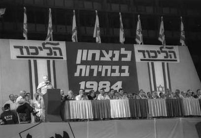 Выступление Ариэля Шарона на съезде партии Ликуд в 1984 годуВ 1983 г. Шарон, на которого возложили ответственность за осуществленную христианскими фалангистами резню в Ливане (1982 г.), ушел с поста министра обороны, что многие сочли окончанием его политической карьеры. Вопреки ожиданиям, он остался в политике, причем был достаточно влиятельным, чтобы возглавить партию «Ликуд» в 1999 г., а в 2001 г. был избран премьер-министром Израиля. «Он вступил в должность спустя четыре месяца после начала мощного палестинского восстания. Израильские избиратели отдали предпочтение ему, а не его предшественнику Эхуду Бараку, в надежде, что Шарон сможет восстановить безопасность». Вначале он обратился к палестинским властям с призывом положить конец насилию, однако это не привело к желаемым результатам, и Шарон начал задействовать вооруженные силы. «На границе с Ливаном стало расти напряжение, а прежде дружеские отношения с более умеренными правительствами Иордании и Египта сильно охладели. Надежда на налаживание мирных отношений с соседями Израиля казалась совершенно эфемерной. На это Шарон возражал, что если и можно добиться мира после столетнего конфликта, то для этого нужно проделать грязную работу, которой он и занимается».