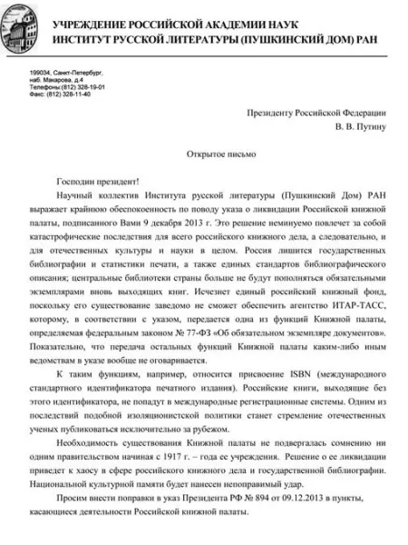 Ликвидация Палаты, то есть уничтожение или передача ее функций «в чужие руки», может привести к непредсказуемым последствиям для отечественного книжного дела.