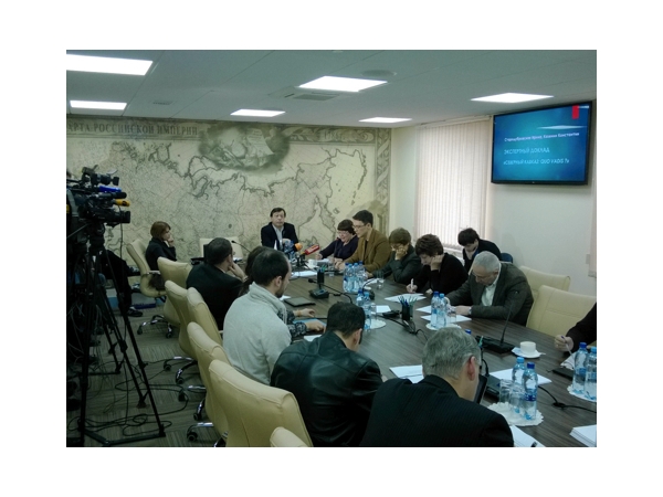 Презентация доклада. Фото: КГИ 14 января в Комитете гражданских инициатив состоялось обсуждение доклада «Северный Кавказ: quo vadis?», подготовленного руководителем Научного направления «Политическая экономия и региональное развитие» Института Гайдара Ириной Стародубровской и старшим научным сотрудником Института Гайдара Константином Казениным. Авторы считают, что власть и общество во многом заблуждаются относительно положения дел в этом регионе.