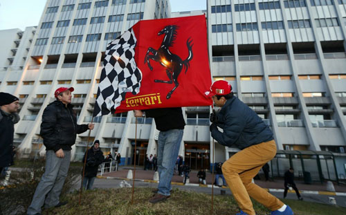 Фанаты у больницы в Гренобле. Фото: sh-formula1.com В коме Михаэль Шумахер встретил и свое 45-летие. 3 января, в день рождения гонщика, его болельщики установили круглосуточную вахту у больницы в Гренобле. Все болельщики были одеты в красные цвета Ferrari и принесли с собой флаги клуба. Как пояснил представитель команды Ренато Бизиньяни, это было сделано «в знак солидарности с Шумахером и уважения к нему».