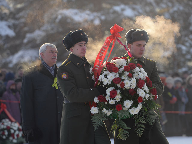 Георгий Полтавченко напомнил, что в этих местах воевал отец российского президента Владимира Путина, погибли десятки тысяч защитников Ленинграда. Губернатор Ленинградской области Александр Дрозденко отметил, что "в Кировском районе буквально каждый сантиметр земли полит кровью, неслучайно сегодняшний день считается днем второго рождения Ленинграда". А спикер Госдумы Нарышкин призвал "хранить историческую память, если не хотим повторения тех страшных событий". Участники церемонии возложили цветы и венки к мемориалу и почтили память погибших минутой молчания.