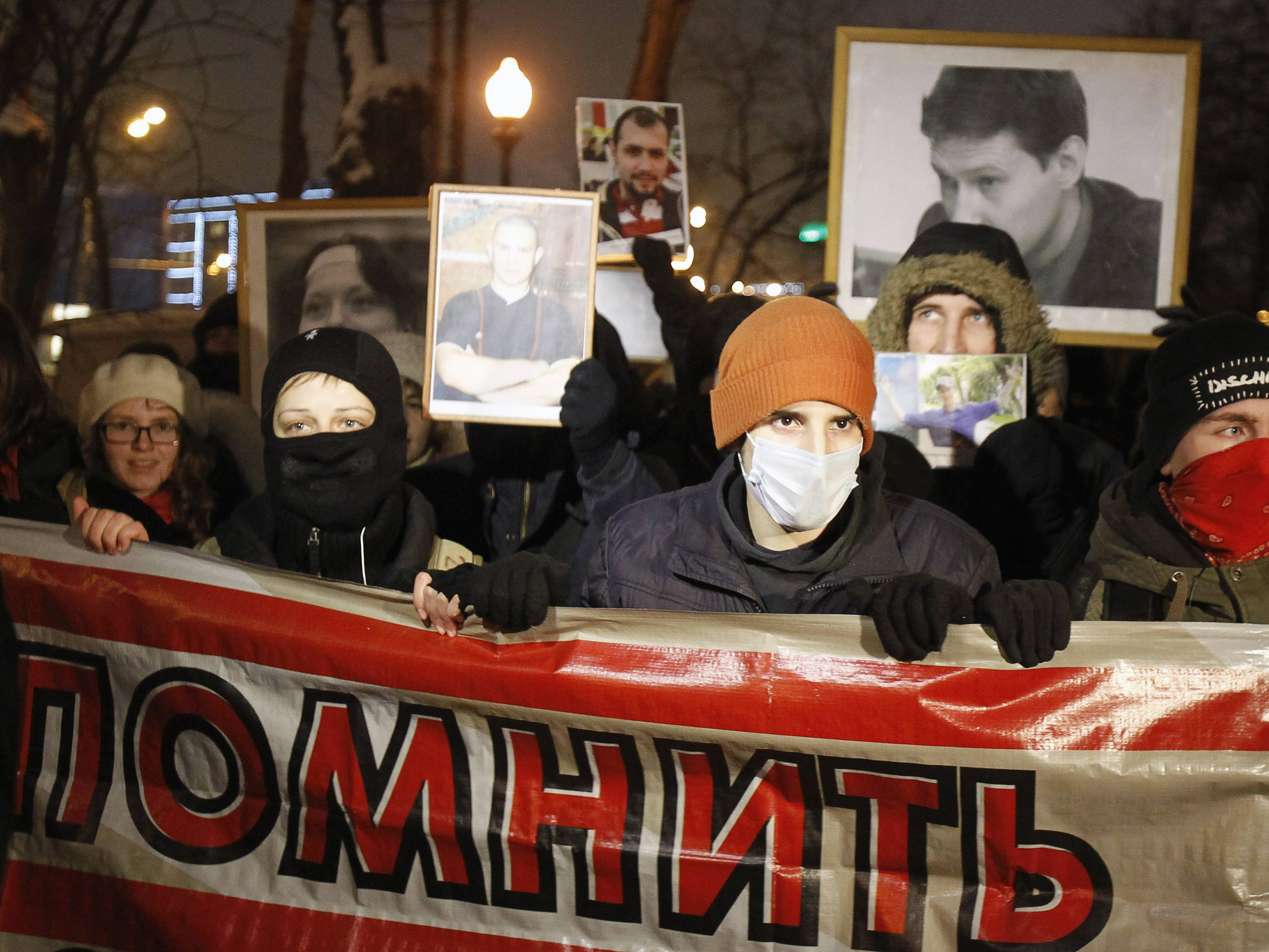 Участники шествия требовали выпустить на свободу и обвиняемых по "Болотному делу" и других заключенных, которых многие в России считают политическими. По всему маршруту шествия дежурили наряды сотрудников полиции, как сообщают в твиттере наблюдатели ОГОН – "Объединенной группы общественного наблюдения за соблюдением конституционных свобод", за соблюдением порядка следили и солдаты внутренних войск: "Внутренние войска в зимней форме, без опознавательных знаков, с дубинками".