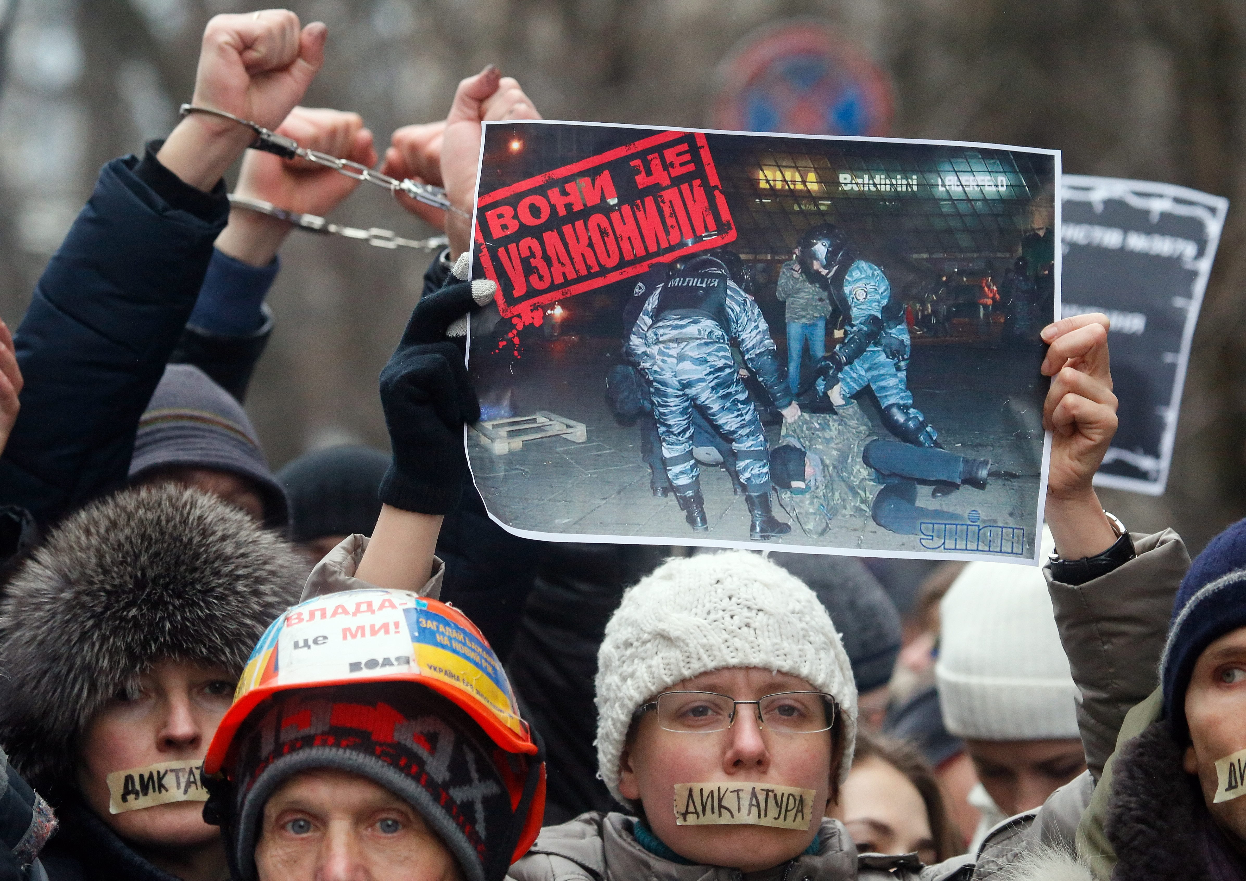 Пытаясь расправиться с Майданом, большинство Верховной Рады 16 января с нарушением процедуры утвердило пакет законов, призванных ограничить права и свободы граждан и запустить маховик репрессий. Эти законодательные инициативы осудили США и Евросоюз. Тем не менее, 17 января их подписал президент Виктор Янукович, который, по мнению оппозиции, таким образом “узаконил диктатуру и превратил Украину из страны, стоявшей на пороге европейского содружества, в новую Северную Корею”.