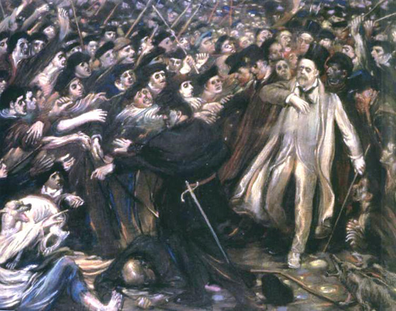 © Henry de Groux, 1898 «Глумление над Золя» Пикар не останавливался: в июле он направил в военный трибунал письмо, в котором обвинил нового военного министра Годфруа Кавеньяка в использовании фальшивых документов при отчете о деле Дрейфуса перед депутатами Национального собрания. Кавеньяк обвинил Пикара и Леблуа в клевете. Вскоре отставного офицера арестовали по обвинению в нелегальной передаче документов и отправили в знаменитую парижскую тюрьму Сантэ. Однако помощник министра капитан Кинье доложил своему шефу о том, что Анри действительно подделал документы. В августе Фальшивого Анри лично допросил Кавеньяк, после чего одного из антигероев процесса отправили в тюрьму Мон-Валерьен, где он покончил жизнь самоубийством, вскрыв себе вены бритвой (по версии Пикара, его убили во избежание огласки), 30 августа. Через три дня Кавеньяк был отправлен в отставку, тем не менее одиссея мятежного офицера продолжалась. В начале рассмотрения дела о разглашении военной тайны Пикар предупредил публику, собравшуюся в суде: «Если газеты через несколько дней заявят, что я повесился или вскрыл себе вены, не верьте этому. Такие, как я, самоубийством не кончают». 22 сентября его перевели в замок Шерш-Миди. За решеткой Пикар продолжал заниматься самообразованием, учил русский язык, читая Льва Толстого.