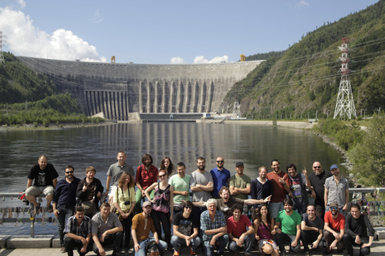 © Виталий Лабутин МузЭнергоТур, вся команда вместе с водителями на Саяно-Шушенской ГЭС Мы действительно ехали целый месяц, с конца июня до конца июля. Играли очень разные концерты на очень разных площадках: и в клубах, и в филармониях, и на опенэйрах, и за городом, и в городе; на фолк-фестивалях, джаз-фестивалях; за деньги, без денег; двухчасовые концерты, трехдневные — то есть было практически все, что можно. В туре участвовали музыканты из восьми стран, музыка постоянно менялась, и в какой-то момент она даже приобрела новое качество: вместо того чтобы играть свои собственные программы, коллективы, понимая, что у них зачастую не так много времени на сцене, стали взаимопересекаться, перестраиваться, совершенно не гнушаясь, скажем, в швейцарский состав затаскивать и чилийцев, и воронежцев. Это, как мне показалось, такая новая форма существования гастрольной музыки в наше время — Владимир Борисович Фейертаг назвал все это «внежанровым скоморошьим туризмом». Мне очень понравилась эта фраза, потому что это было действительно внежанровое, действительно псевдотуристическое — ну, потому что не так важны тут деньги-заработки, как сама идея, — и действительно скоморошество. Вот, скажем, лежат за сценой шарики, оставшиеся от безумной русской свадьбы, — ну так давайте во время выступления какого-нибудь трио Люсьена Дюбюиса возьмем их и устроим китайского дракона на заднем плане, что ж, просто так, что ли, сидеть. В Красноярской филармонии мы собрали аншлаг. Летом. В понедельник. Никто, по-моему, этого не ожидал, и люди, которые уходили оттуда, говорили: «Елки-палки, это лучший филармонический концерт года» — это точная цитата. Понятно, что это была наша аудитория, но тем не менее, я думаю, какую-то свежую струю нам удалось привнести.