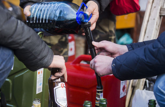 Изготовление «коктейлей Молотова». Фото: Евгений ФЕЛЬДМАН — «Новая»