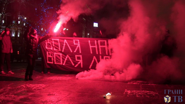 Накануне акция в поддержку Евромайдана прошла на Гоголевском бульваре в Москве. Восемь активистов лево-националистической организации "Народная воля" развернули баннер и зажгли файеры.
