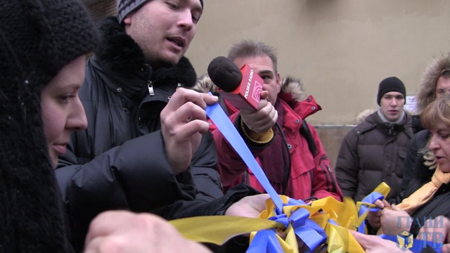 В декабре акции в поддержку Евромайдана проходили у посольства Украины. 2 декабря активистов "Солидарности" уже задерживали с баннером "Украина, мы с тобой!".