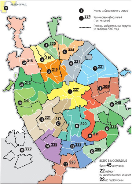 Другие две новации в правилах проведения выборов в столичный парламент были уже одобрены ранее. Во-первых, количество депутатов в соответствии с требованиям федерального законодательства увеличено с 35 до 45 человек. Таким образом на каждого депутата будет приходиться около 150 тысяч избирателей, это в среднем 2-3 района, а не половина административного округа, как сейчас. Впрочем, даже после этого расширения московский парламент будет одним из самых маленьких региональных собраний в стране.