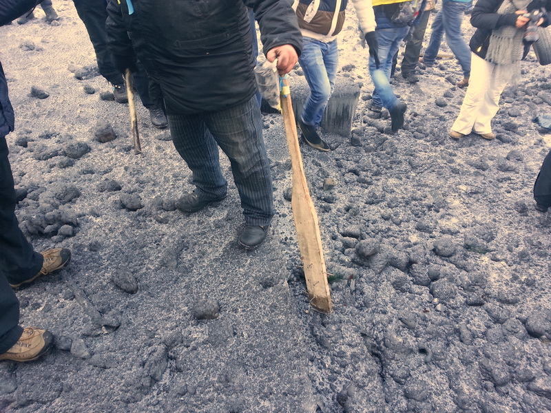Из узкой щели, любезно оставленной для прохода строителями баррикад между заледеневшими мешками со снегом и стеной дома, я выхожу на Крещатик, в самый центр "Евромайдана" и понимаю, что еще никогда не чувствовал себя столь спокойно вреди такого огромного количества людей с битами в руках. Это не бейсбольные биты из магазина – дорого, да и дефицитный товар в нынешнем Киеве. Они сделаны своими руками, вытесаны из досок, имеют в сечении квадратную, а не круглую форму и удобную рукоятку. Размеры разные, в какой-то момент мне на глаза попался по-настоящему богатырский вариант, около двух метров в длину, а некоторые, напротив, больше напоминают коротенькую плоскую биту для игры в лапту.