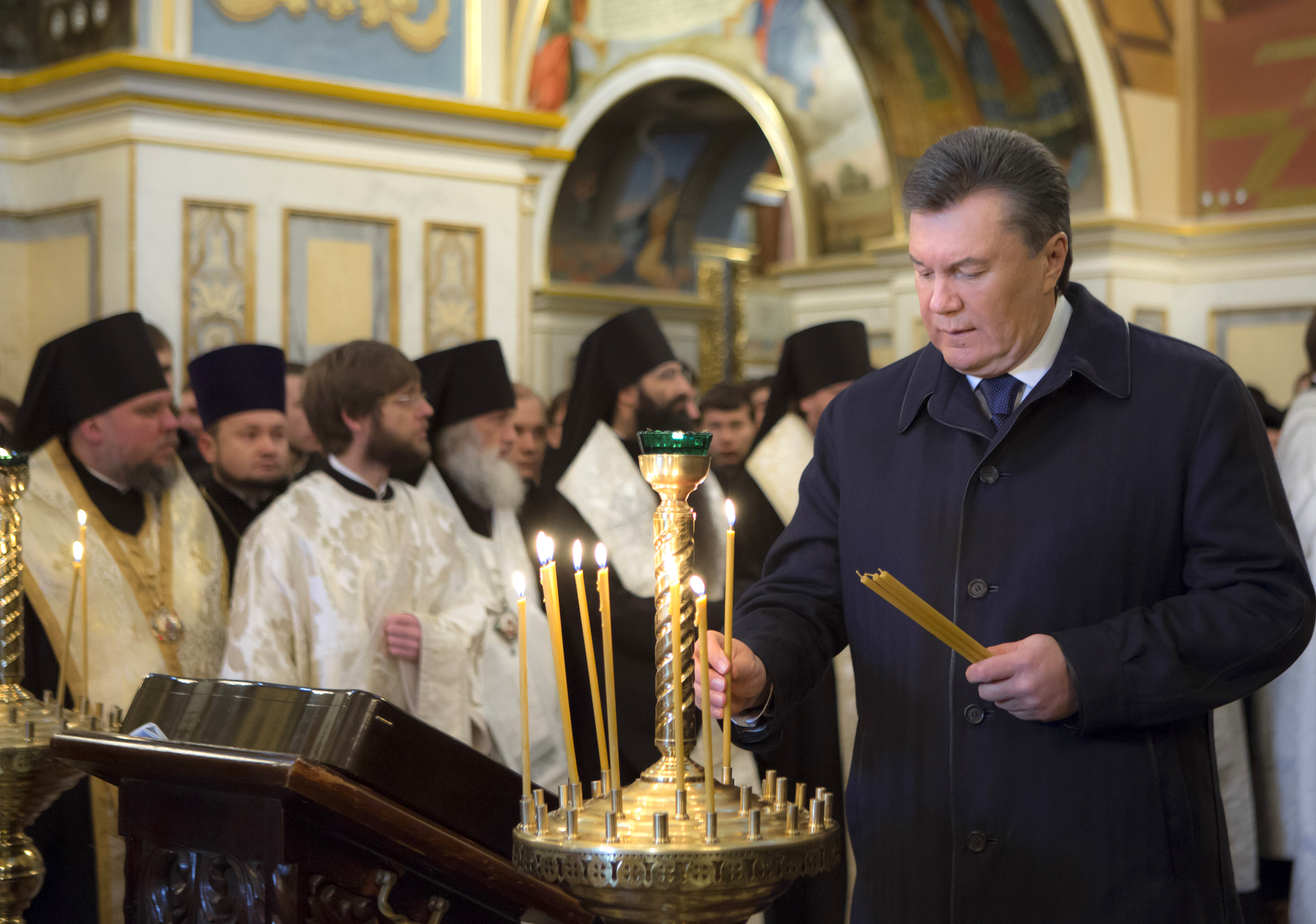 Президент Виктор Янукович ставит свечку за Украину по случаю Дня Соборности и Свободы Президент Украины Виктор Янукович обратился с призывом к политикам стран Востока и Запада прекратить борьбу за влияние на его страну. "В чем нам могут помочь политики и Запада и Востока?" - задается вопросом Янукович. По его словам, они должны прекратить между собой борьбу за Украину. Наш народ сам справится с теми проблемами, какие мы сейчас переживаем. Мы, конечно, благодарны за намерения. Но, будем откровенны, порою за этими добрыми намерениями стоит элементарная борьба за влияние на Украину. "Наше государство независимо. Народ - зрелый. Мы хотим и можем сами решать судьбу нашей страны", - говорится в комментарии, переданном агентству "Интерфакс-Украина" в четверг. В комментарии отмечается, что "историческая судьба Украины является сложной с самого начала, еще со времен Киевского государства".