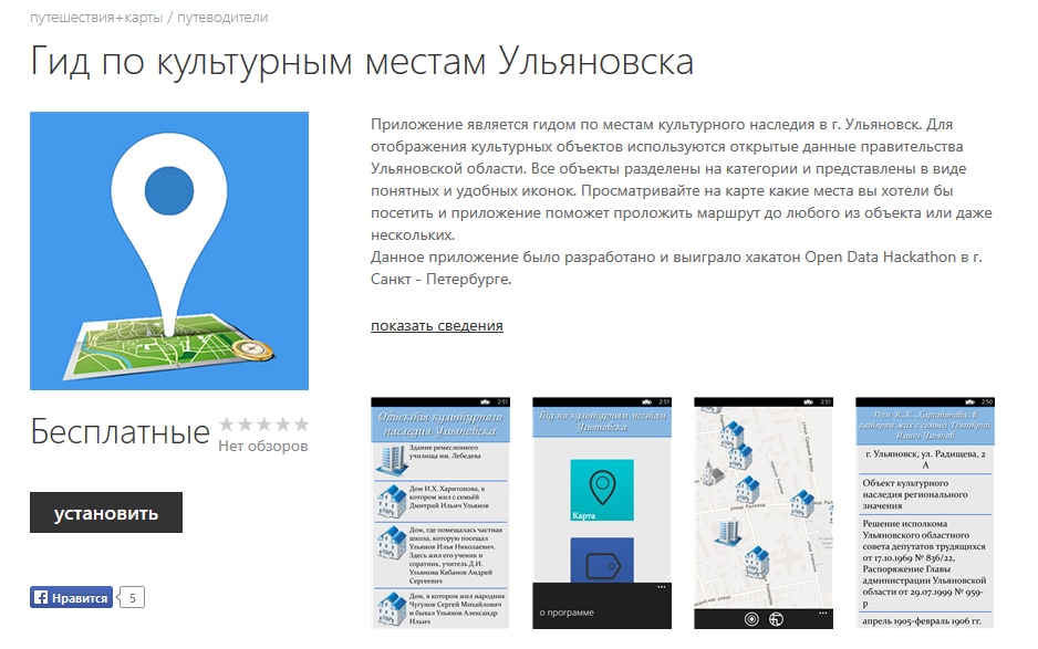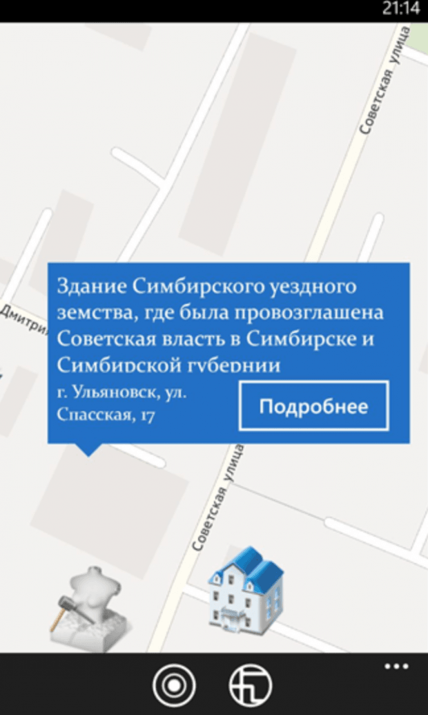 Приложение «Гид по культурным местам Ульяновска» распространяется бесплатно и работает на Windows Phone 8.