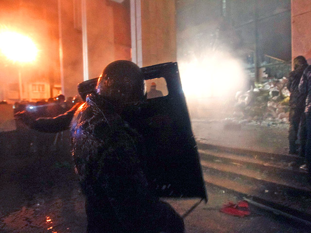 Ночью протестующим не удалось занять здание. Однако были побиты стекла, окна со стороны оппозиционеров летели коктейли Молотова и фейерверки, оттуда - светошумовые гранаты и потоки воды из брандспойтов. При посредничестве депутатов с милицией начались переговоры: для них организовали коридор, которым правоохранители воспользовались через несколько часов. Сообщается, что здание покидали курсанты Академии Внутренних войск МВД, то есть срочники, а не спецназ.
