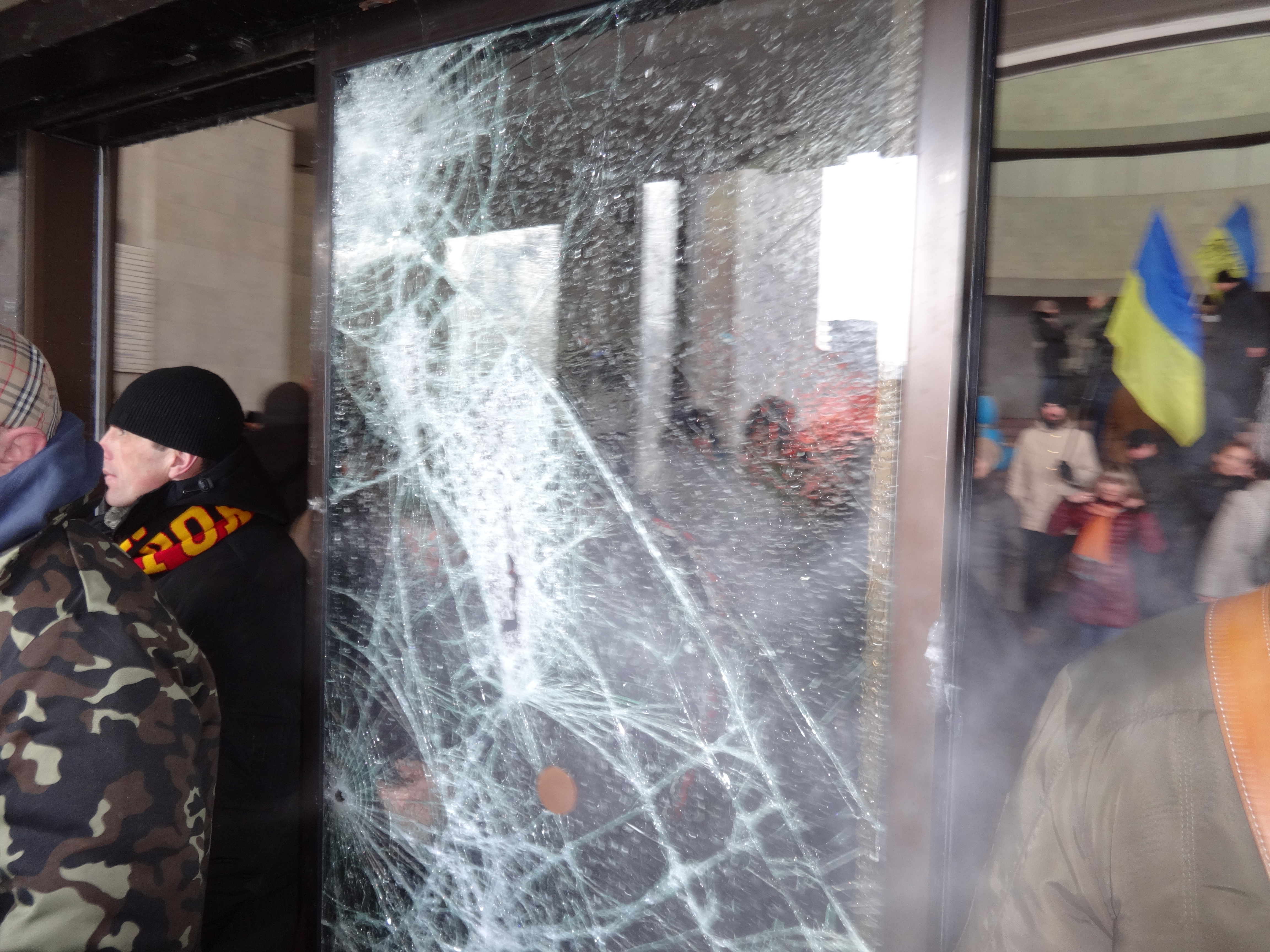 После того как практически во всех западных и центральных регионах Украины в минувшие два дня демонстранты взяли по свой контроль здания областных госадминистраций в воскресенье их примеру начали следовать и остальные регионы. Драматические события разворачиваются в областях на востоке Украины, где традиционно были особенно сильны позиции президента Виктора Януковича и правящей Партии регионов.В Запорожье тысячи митингующих пытаются взять штурмом здание областной администрации. Они забрасывали сотрудников милиции камнями, а милиционеры их – свето-шумовыми и газовыми гранатами. Участники протестов скандировали "Банду – геть!" и "Вставай, Запорожье!". В результате столкновений ранены как минимум пять человек. На первом этаже оборону заняли “титушки” – молодые люди, нанятые властями.