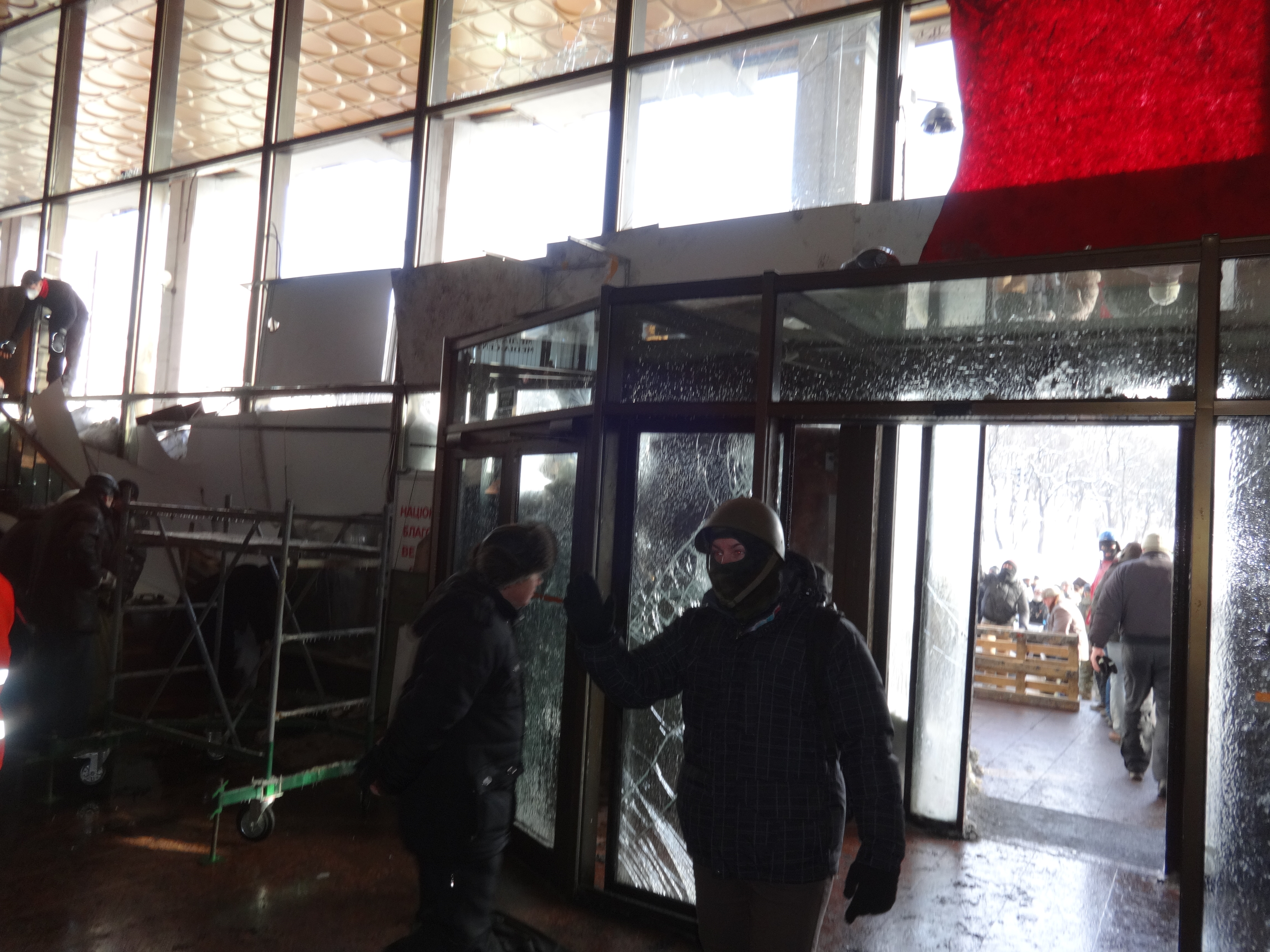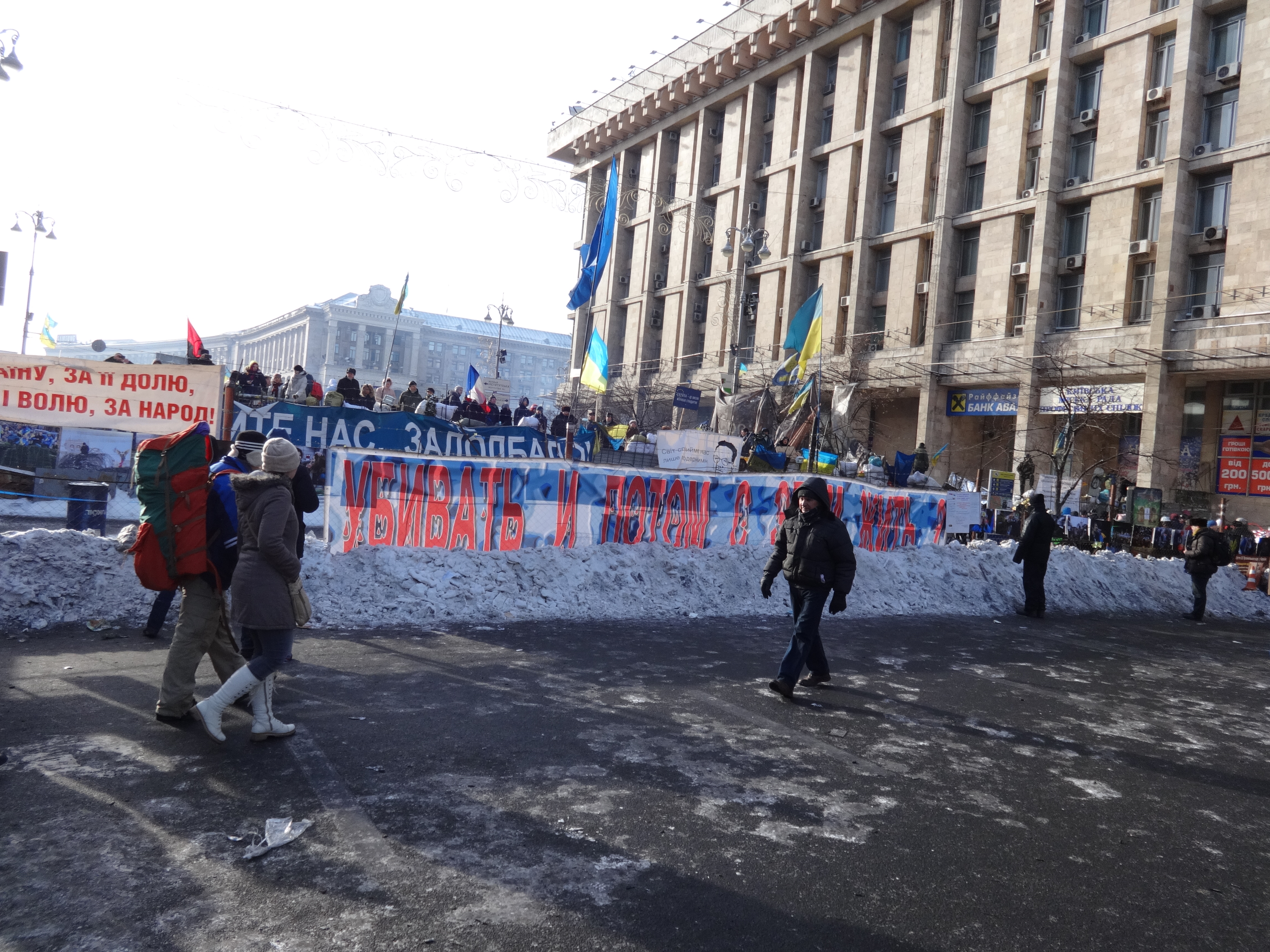 В субботу в Украинский дом прибыли около двухсот бойцов внутренних войск из Киева и Одессы. Предполагалось, что они могут атаковать с тыла демонстрантов, занимающих позиции на баррикадах возле улицы Грушевского. Под выкрики протестующих “Позор!” и “Банду – геть!” после четырех утра бойцы ВВ покинули Украинский дом. Сейчас здесь размещается охрана из числа активистов, задача которой – предотвращение мародерства.