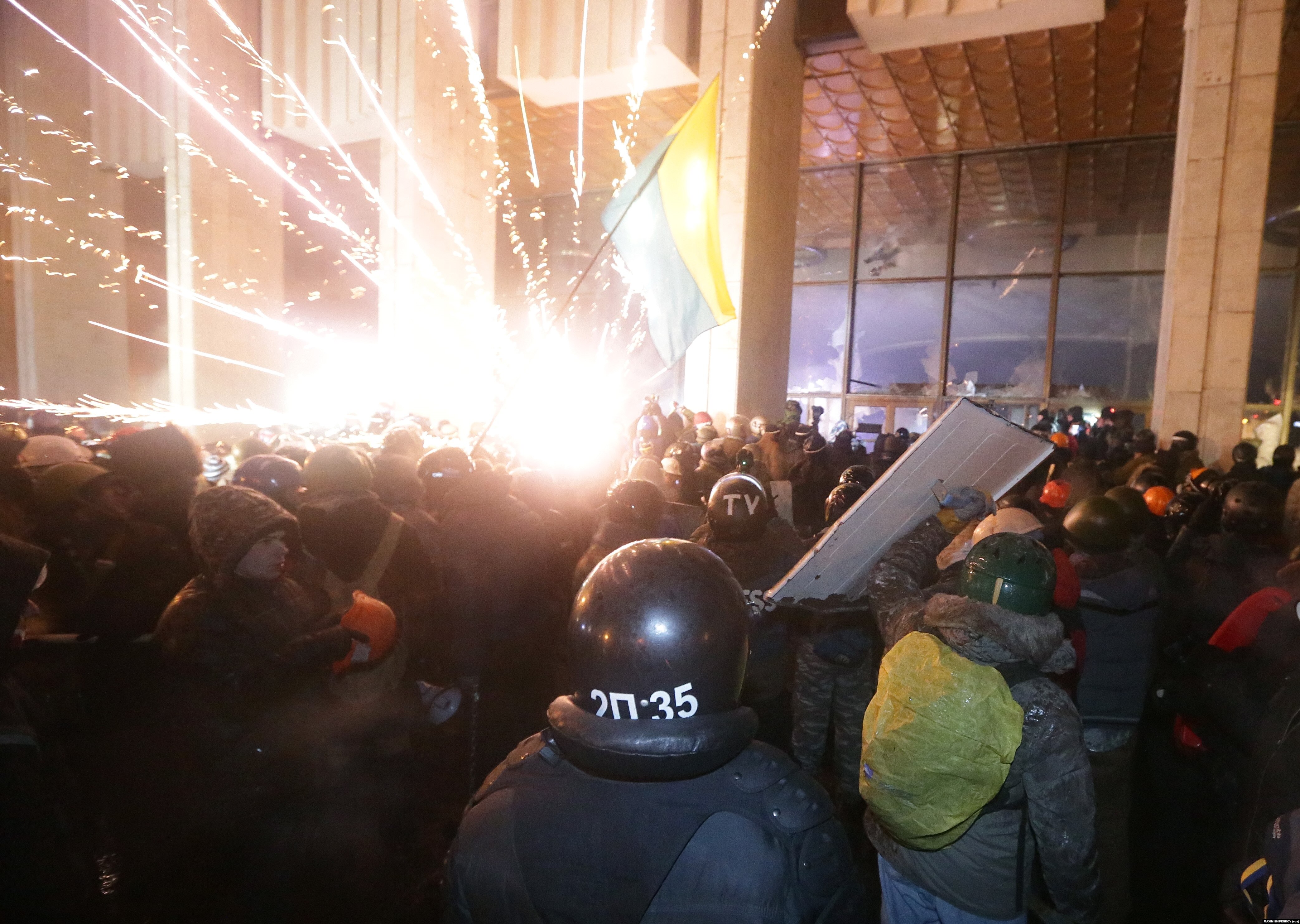В ночь на субботу свыше полутора тысяч активистов Майдана взяли штурмом Украинский дом, находящийся в нескольких сотнях метров от баррикад на улице Грушевского.