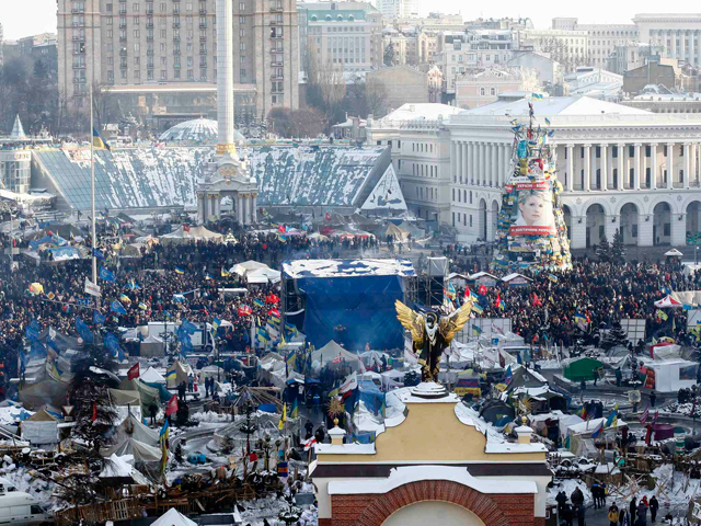 На "Евромайдане" в Киеве на каркасе новогодней елки нашли труп мужчины