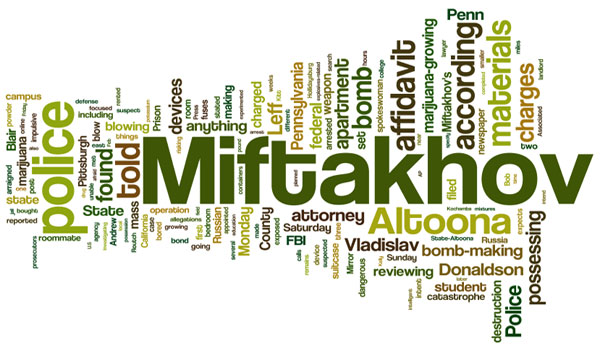 Дом Владислава Мифтахова в Алтуне Фото: Anna Orso 26 января 2014 г. не самый примечательный американский городок Алтуна (Altoona, штат Пенсильвания) прославился на весь мир. В этот день местная газета Altoona Mirror сообщила, что «алтунский первокурсник Университета штата Пенсильвания, приезжий из Москвы (Россия), был арестован поздним вечером в пятницу [24 января] по обвинению в хранении оружия массового поражения и создании рискованной ситуации, способной привести к катастрофе, после того как сотрудники городской полиции, как сообщается, обнаружила самодельную бомбу и материалы для создания бомбы в его комнате, куда они пришли в рамках операции по выявлению случаев выращивания марихуаны».