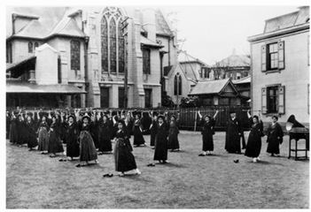 Первый публичный парк, приспособленный для пеших прогулок, был открыт в 1876 году в Токио, в районе Уэно. Одной из целей его создания было повышение двигательной активности горожан на европейский лад. Там же, в Уэно, чуть позже построили и ипподром — несущиеся скакуны создавали необходимую составляющую образа новой Японии. Вслед за Уэно публичные парки стали появляться по всей стране. Они предоставляли возможность для моциона, занятий физкультурой и спортом. Впервые в японской истории системная забота о здоровье подданных стала предметом внимания государства. Император Мэйдзи позиционировался как отец/мать всех японцев, и государство в его лице начало процесс по присвоению тех функций, которые раньше принадлежали родителям: дать детям образование (всеобщее обязательное начальное образование было введено в 1872 г.), вырастить их здоровыми, крепкими и подвижными. Публичным садам отводилась в этом деле большая роль.