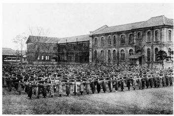Элита училась в элитных школах и университетах, где занятиям физкультурой и спортом уделялось первостепенное значение. Это привело к появлению нового для Японии типа красоты (в особенности мужской), соответствующего европейским нормам. Писатель Мори Огай (1862—1922), описывая в повести «Дикий гусь» события 1880 года, так аттестовал своего персонажа, студента престижного Токийского университета по фамилии Окада: «Он отличался красотой, но не той, которую принято считать образцом, это был не изнеженный юнец, а крепкого сложения молодой мужчина со здоровым румянцем»[7]. И немудрено — ведь Окада занимался греблей.
