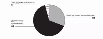 Причем, как видим, эта зависимость распространяется не только на позиции по вопросам, расположенным в одной и той же проблемной плоскости. Разумеется, было бы странным, если бы люди, толерантно относящиеся к разводам, не демонстрировали повышенной толерантности и применительно к гражданским бракам, а также к абортам: тут содержательная взаимосвязь суждений более или менее очевидна. Но люди, считающие недопустимым расторжение брака, гораздо чаще, чем их оппоненты, признают неприемлемыми и попытки уклониться от армейской службы (79 против 59 %), и отъезд на ПМЖ за границу (53 против 19 %), и эвтаназию (50 и 28 %). Иначе говоря, на взгляды граждан относительно допустимости той или иной спорной социальной практики влияет помимо их воззрений относительно этой конкретной практики и некая более общая установка. Одни склонны санкционировать свободный выбор индивида — и этот фактор так или иначе влияет на их суждения о любых практиках, другие, напротив, предпочитают незыблемость традиционного морального порядка — и это тоже сказывается на их мнениях по всем вопросам.