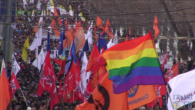 Перед началом шествия полиция досматривала его участников и цензурировала наглядную агитацию. Накануне власти предупредили, что на плакатах и транспарантах запрещено упоминать Олимпиаду и Евромайдан. Организаторы заявили, что не подчинятся незаконным требованиям, и призвали участников марша писать на плакатах любые лозунги.