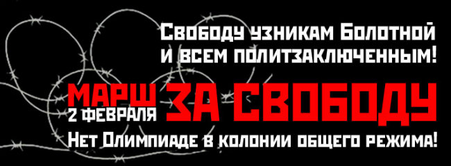 2 февраля в Москве состоится шествие за освобождение фигурантов "Болотного дела" и всех политзаключенных. Акция согласована с мэрией. Организаторы собирались устроить марш на Тверской, но согласились на маршрут по бульварам - от Пушкинской площади до Тургеневской. Сбор с 14:00 до 15:00 на Страстном бульваре.
