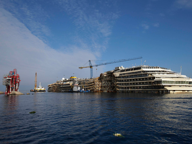 Летом прошлого года Costa Concordia, больше года пролежавший на мели, был приведен в вертикальное положение. В настоящее время идет подготовка к снятию лайнера с подводной платформы, на которую его установили в прошлом году. Как ожидается, к апрелю к лайнеру присоединят контейнеры, которые придадут кораблю плавучесть. К концу июня он будет отбуксирован в один из 12 портов, которые готовы утилизировать его.