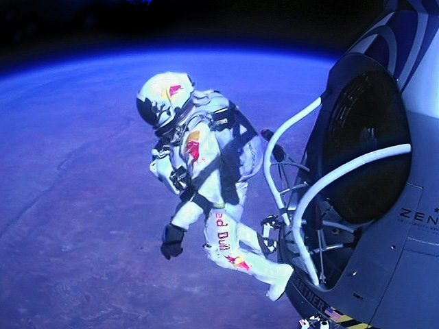 Баумгартнер выпрыгнул из специальной капсулы, поднятой с помощью воздушного шара с гелием в стратосферу на высоту 39045 метров. Свободное падение спортсмена-экстремала, получившего прозвище Бесстрашный Феликс, длилось 4 минуты 19 секунд. После этого раскрылся парашют, и смельчак благополучно приземлился в американском штате Нью-Мексико.