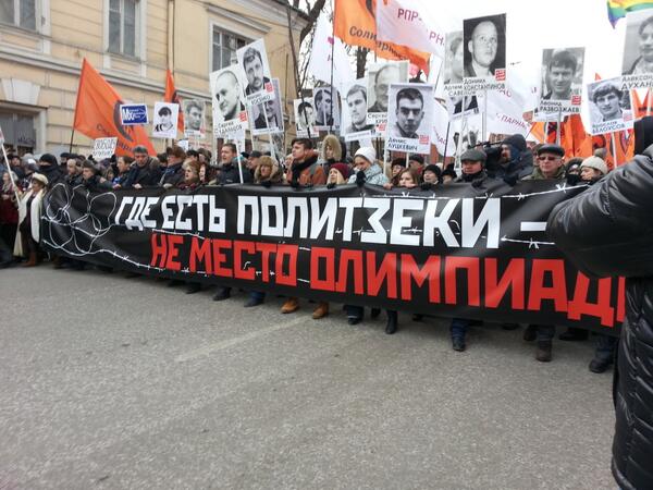 Петр Царьков пишет в своем фейсбуке: "Обнаглевшие чиновники сообщили организаторам о том, что планируют осуществлять цензуру. По их мнению, на акции не должно быть никаких плакатов про Олимпиаду в Сочи, а также в поддержку Майдана". Вот первые интервью с шествия корреспонденту Радио Свобода Мумину Шакирову: