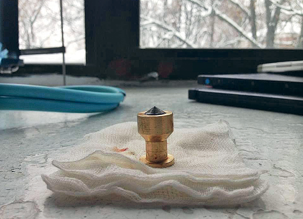 Хотелось бы уточнить, в патроне, фото которого Вы мне выслали (в пуле. — А.Б.), сердечник твердосплавный, свинцовый или стальной?»