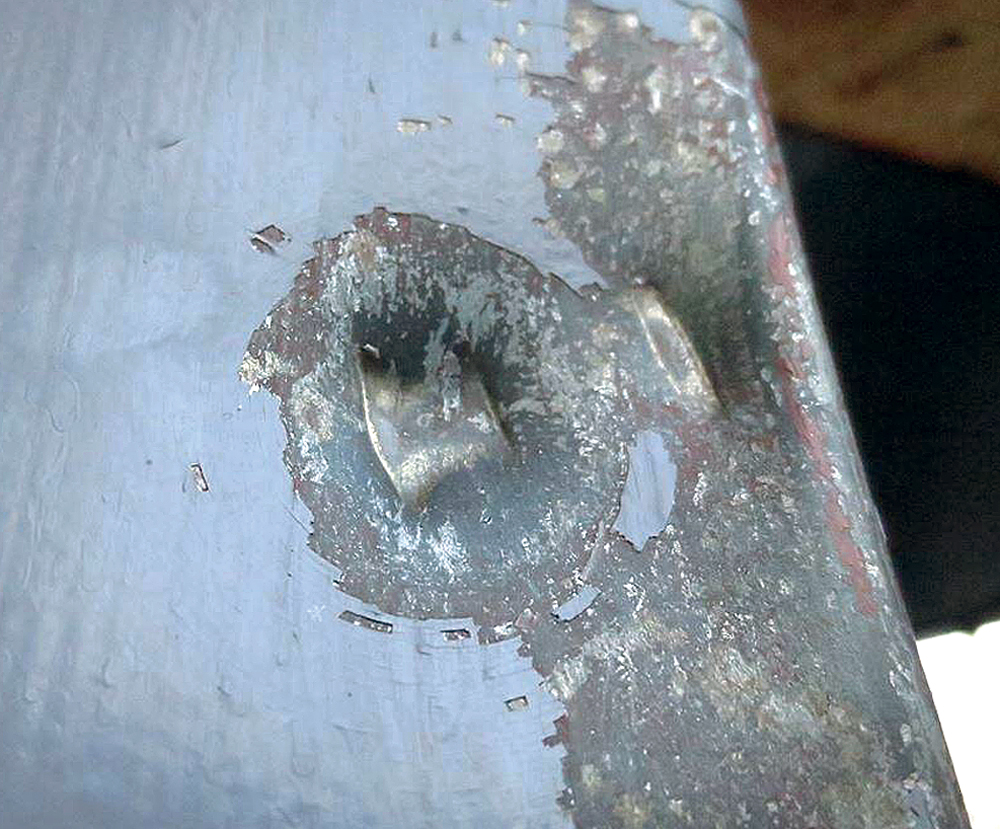 | Пуля, оставившая след на металлической стойке кафе на ул. Грушевского… |