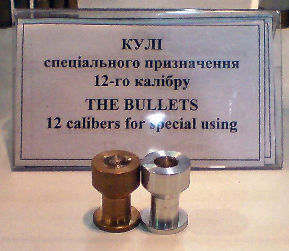 Еще в 2009 году на выставке вооружений на стенде МВД Украины были продемонстрированы пули спецпредназначения, способные пробивать бронежилет 4-го класса защиты* или, чтобы легче было представить человеку неискушенному, пятимиллиметровый лист стали. Пуля — все того же катушечного типа, 12-го калибра. Притом — это важная отличительная деталь — с твердосплавным сердечником, темным острием, торчащим из тела пули. Разработаны пули были в НИИ спецтехники МВД Украины.