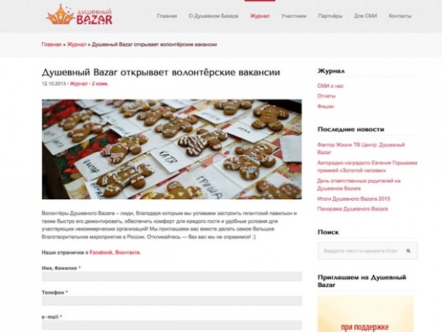 - отдельные периодические публикации, посвященные волонтерским вакансиям или анонсам мероприятий для волонтеров. В этом случае публикация должна содержать всю необходимую организационную и адресную информацию, если нужна регистрация или запись участников, ее снова можно реализовать с помощью интерактивных форм.