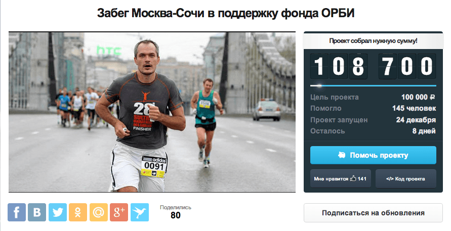 Все желающие могут поддержать спортсмена, покупая акции на Planeta.ru.