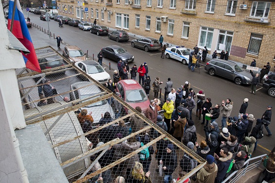 В холле Замоскворецкого суда трансляцию заседания смотрят больше 150 человек