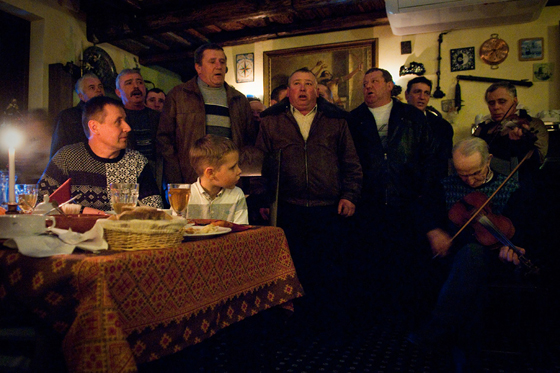 А в доме в большой комнате уже накрыт стол — и сладкая кутья из гречневой каши с медом, орехами и изюмом, и борщ с ушками, и котлеты, и голубцы с картошкой, и грибы — соленые белые, скользкие, и сыр — из-под своей коровы, и еще всего — да помногу. За столом — семья пана Романа (жена с дочкой) и гости. Открывая пост, начавшийся двадцать восьмого ноября, пан поднимает первую стопку — за Украину, за майдан и за интеграцию с Европой. Все привстают, чокаются.