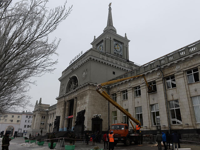 Около здания железнодорожного вокзала в Волгограде, где 29 декабря произошел теракт, установили мемориальную доску в память о погибших.