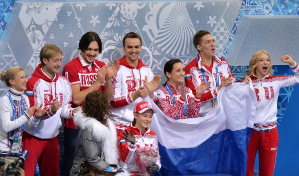 То, что Россия получит золото, стало понятно еще во время произвольной программы женщин в рамках командного турнира, в которой канадка Кэйтлин Осмонд заняла место не выше третьего. Канадцы не смогли бы догнать россиян вне зависимости от того, как выступила бы россиянка Юлия Липницкая.