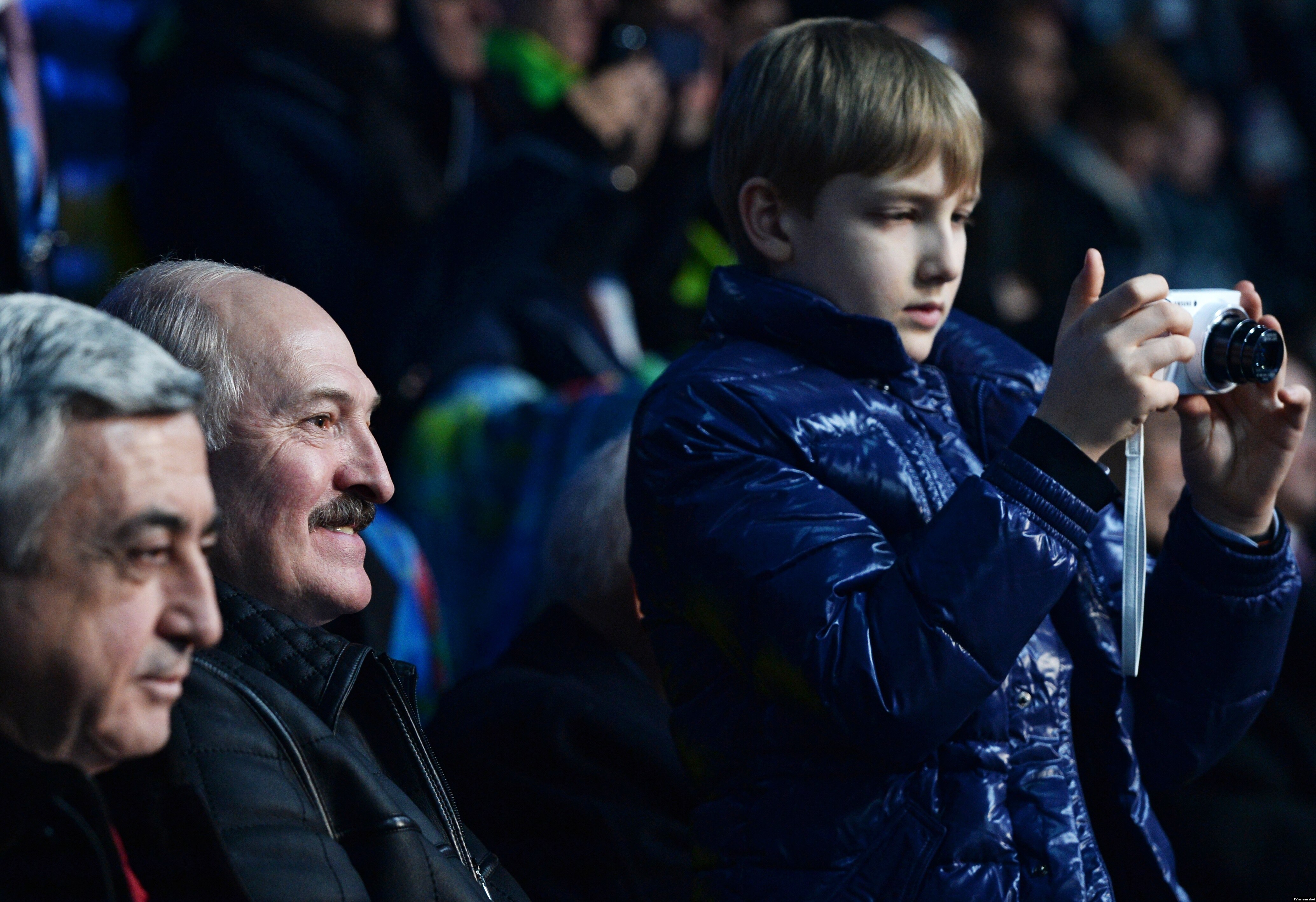 Вечером 7 февраля Лукашенко с сыном восседали в ложе почетных гостей во время церемонии открытия Олимпийских игр, после чего принимал участие в торжественном приеме президента России. Белорусский президент - частый гость расположения национальной сборной, где раздает дельные советы известным спортсменам. В частности, он рассказал, как должна себя вести главная медальная надежда белорусов, биатлонистка Дарья Домрачева: "Спокойно выходи - и стреляй. Не суетитесь, это ж первая гонка. Главное - не суетиться. Если хотите, я могу там, где вот мне тренеры скажут, стать на рубеже, флагом буду размахивать. А хотите - буду бегать где-то там туда-сюда через всю трассу…"