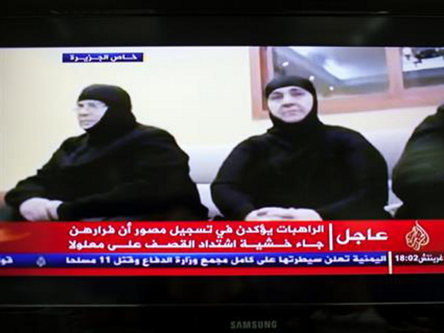 В свою очередь катарская телестанция Al-Jazeera передала видеозапись из Ябруда: на ней была показана группа маалюльских монахинь, большинство из которых - преклонного возраста.