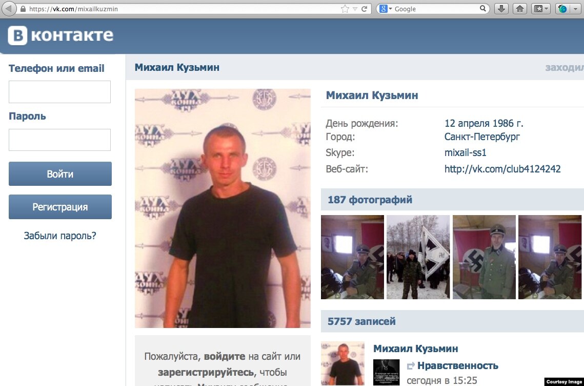 Тем, кто в России защищает права ЛГБТ-сообщества, к пинкам и плевкам не привыкать. Наталья Цымбалова – координатор петербургского "Альянса гетеросексуалов за права ЛГБТ". Она организовала не одну публичную акцию и знает, что после каждой обязательно жди каких-нибудь нецензурных "весточек" в соцсетях, пожеланий гореть в аду и прочего в том же духе. Но последние несколько дней Наталью стали забрасывать "заботливыми" звонками и смс в 3 часа ночи. Оказалось, что такое проявление внимания оказывает Михаил Кузьмин, который сам предоставил Наталье свои интернет-координаты.Если пройти по указанным Кузьминым ссылкам, окажешься в соцсети "ВКонтакте", где на страничке Кузьмина можно найти его снимки в нацистской