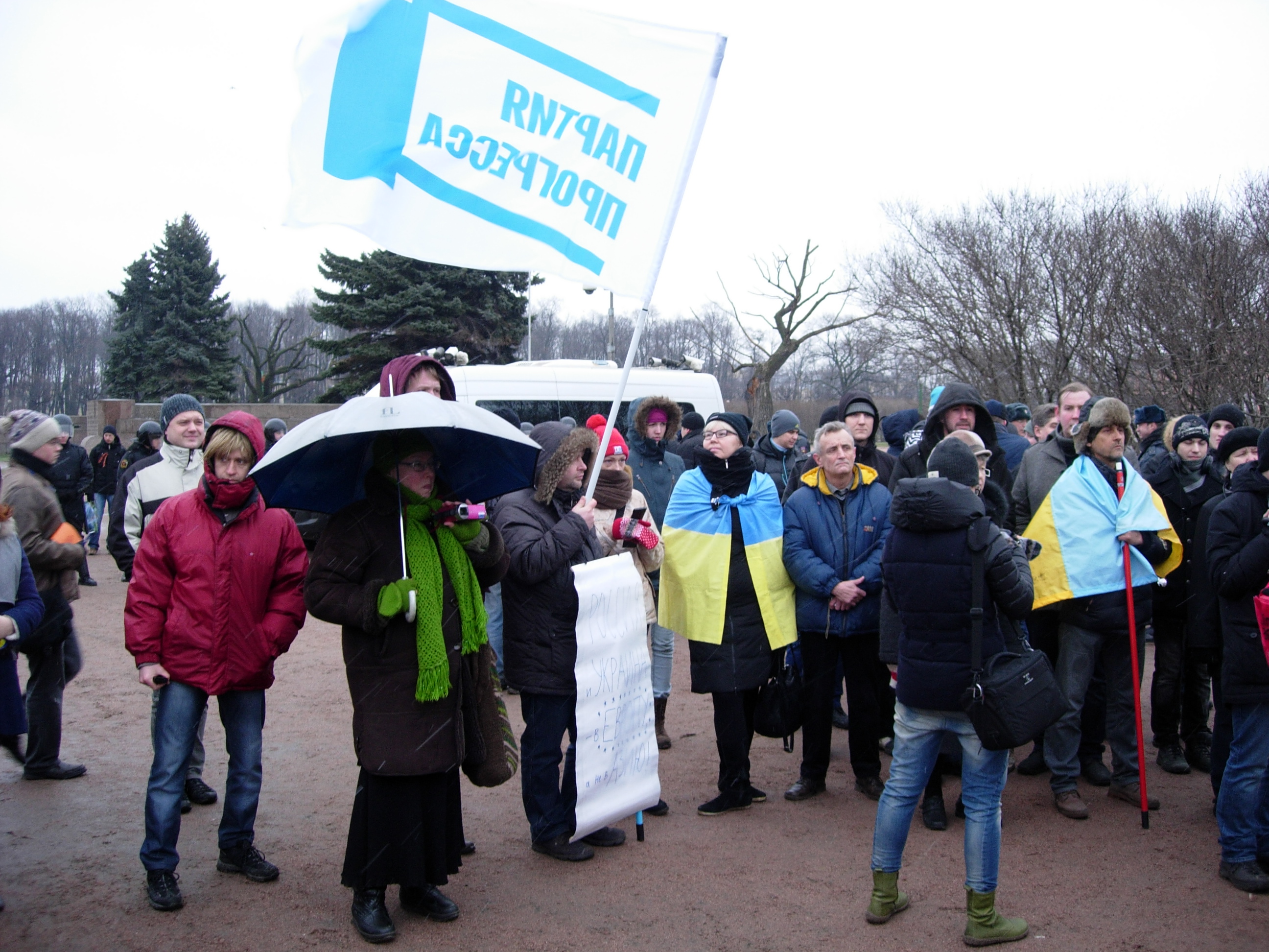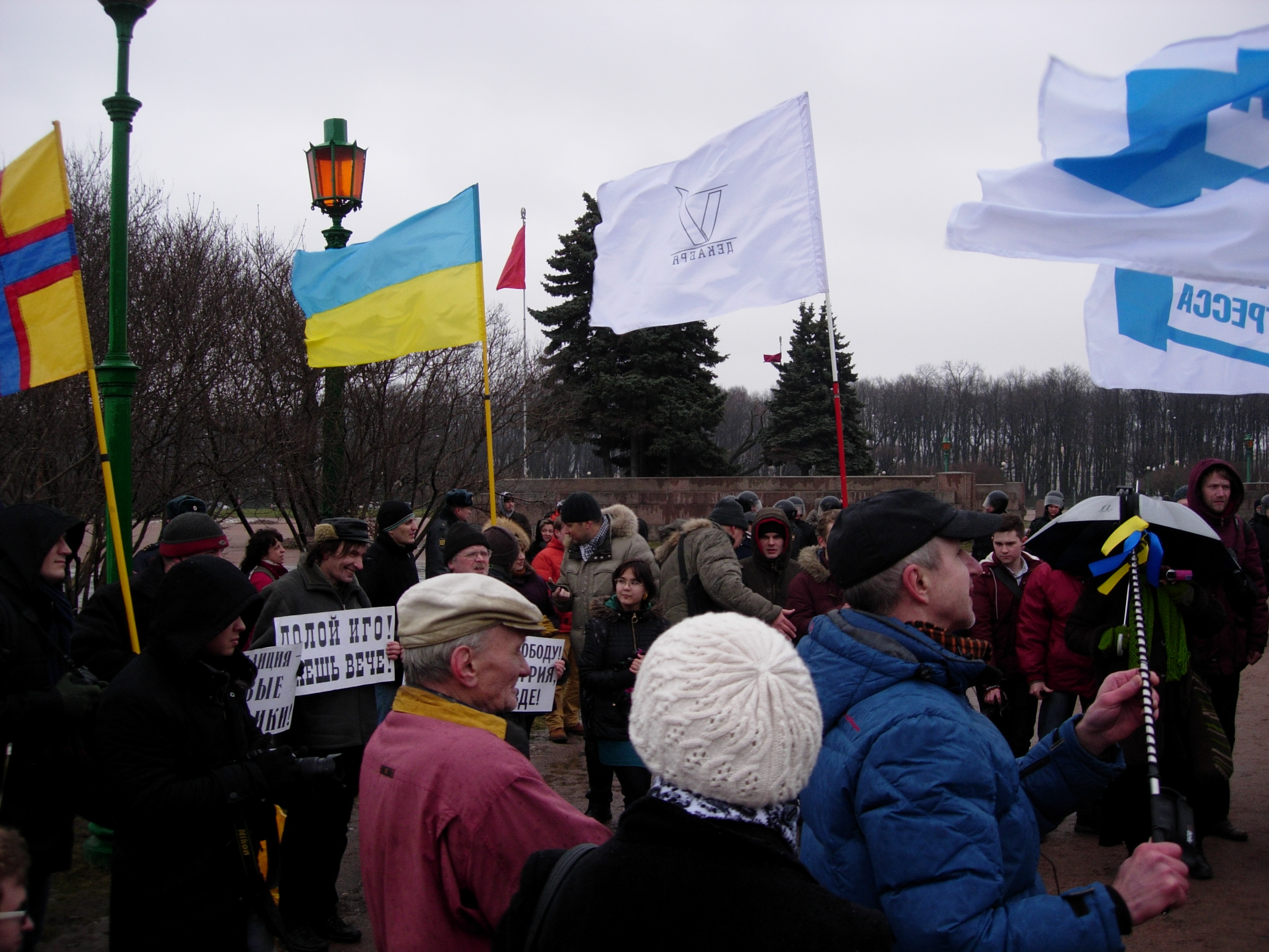 "Украина и Россия – в Европу, а не в Азию!", "Долой Иго – даешь вече!", "Наши традиции – вечевые республики", – с такими плакатами вышли петербургские оппозиционеры на Марсово поле на митинг в поддержку украинского Майдана. Организатором акции выступило движение "Национальные демократы", к которым присоединились активисты петербургских отделений РПР ПАРНАС и Партии Прогресса Алексея Навального.Все желающие приглашались к участию через социальные сети, где была указана и главная цель митинга: выражение поддержки акциям протеста на Украине. Были поддержаны и требования митингующих в Киеве – досрочная отставка президента Украины Виктора Януковича, проведение досрочных свободных выборов президента и в парламент, освобождение всех политических заключенных и отказ от их преследования.