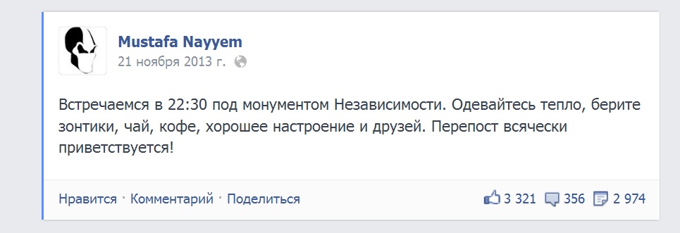 Cкриншот поста Мустафы Найема в фэйсбуке, с которого и начался Майдан