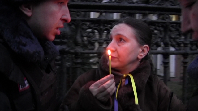У посольства Украины в Москве задержаны несколько участников акции солидарности и скорби, сообщает корреспондент "Граней". Среди задержанных члены Комитета солидарности с Майданом Лолита Цария и Павел Шелков. Провокаторы пытались сорвать акцию.